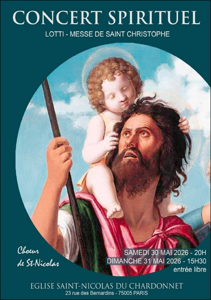 Le chœur de Saint-Nicolas du Chardonnet a le plaisir de vous inviter à deux concerts spirituels qu’il donnera les samedi 31 et dimanche 31 mai en la magnifique église Saint-Nicolas-du-Chardonnet à 15 H 30.