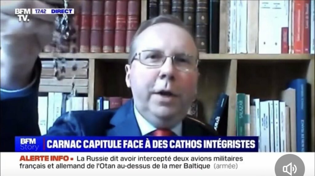 Ce lundi en fin d’après-midi, Alain Escada, président de Civitas, intervenait en direct sur BFMTV. L’entretien faisait suite à l’action de militants de Civitas à Carnac, qui a permis l’annulation d’un concert profanatoire dans une église.