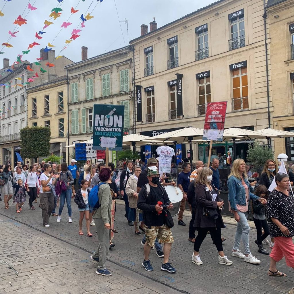 Bergerac fut ce matin, une fois de plus, le théâtre d’une manifestation populaire contre la dictature sanitaire. Les manifestants sont bien déterminés à refuser le passe sanitaire et la vaccination obligatoire.