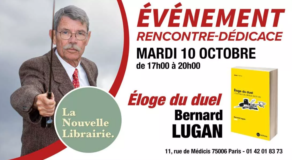 Mousquetaire dans l’âme, Bernard Lugan aiguise sa plume pour défendre le duel dans un livre magistral : Eloge du duel, l’honneur au-dessus de la vie. Car, « qu’on le veuille ou non, le duel est en effet le moyen le plus rapide, le plus efficace et le moins onéreux de rendre enfin prudents plumitifs stipendiés, acrobates du micro, butors de la sous-culture et baises-cul de l’idéologie dominante« . Il sera présent à la Nouvelle Librairie le 10 octobre, de 17h à 20h.