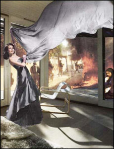 Comme Martha Rosler [Photo ci-contre], dans à sa série de collages « Bringing the war home » a voulu le montrer, ce n’est qu’un élément du Spectacle, venu ébranler un instant l’univers douillet de nos salons, rien de plus qu’un divertissement, dans un monde humilié.