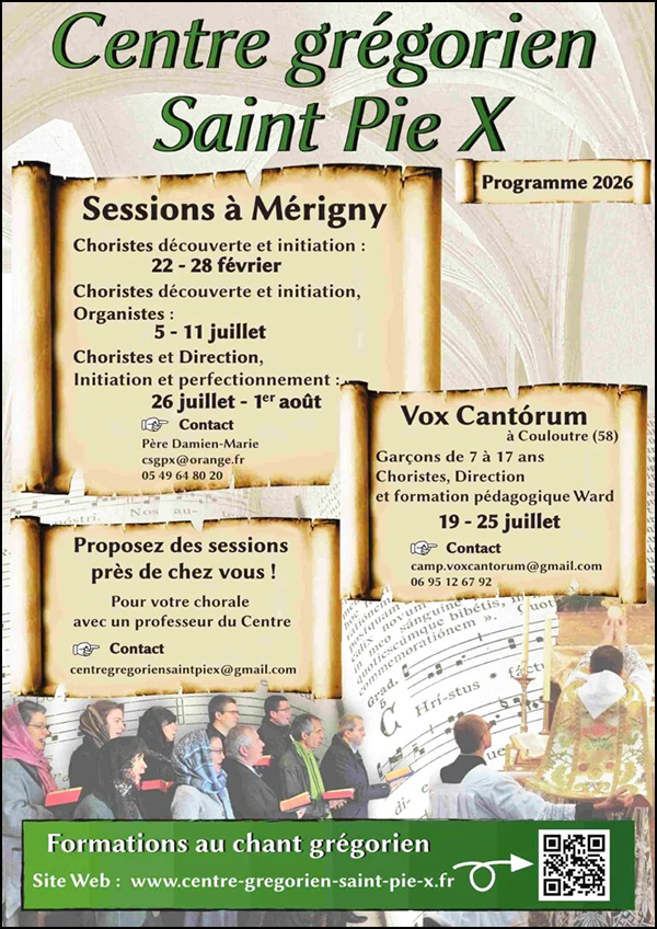 Renseignements : Centre Grégorien Saint-Pie‑X