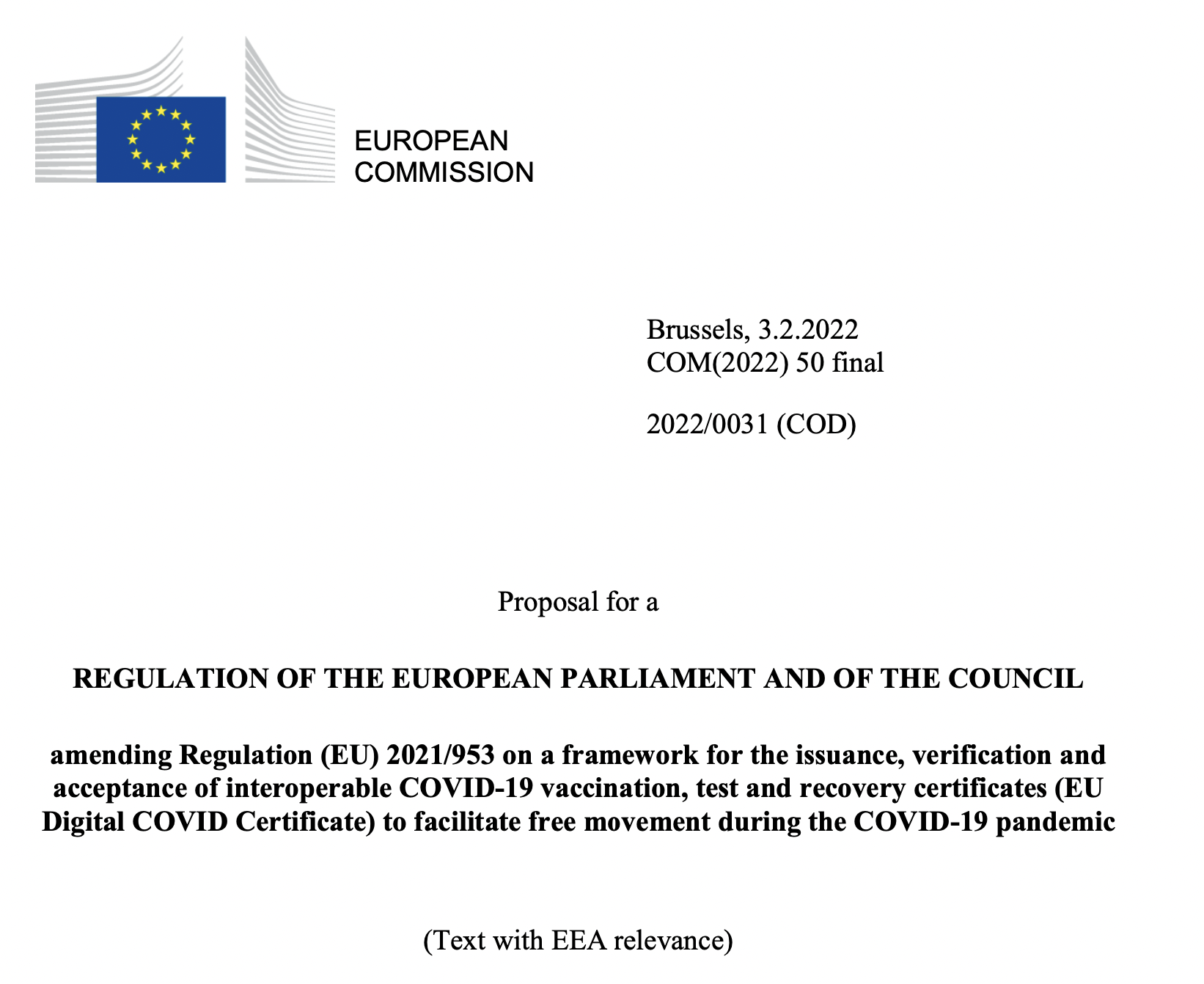 Initialement adopté jusqu’au 30 juin 2022 en ayant promis qu’il ne serait pas prolongé, voici que les menteurs du Conseil de l’Union européenne proposent d’étendre le règlement pour un an. A terme, le certificat vaccinal sera incorporé dans le projet d’identité numérique global.