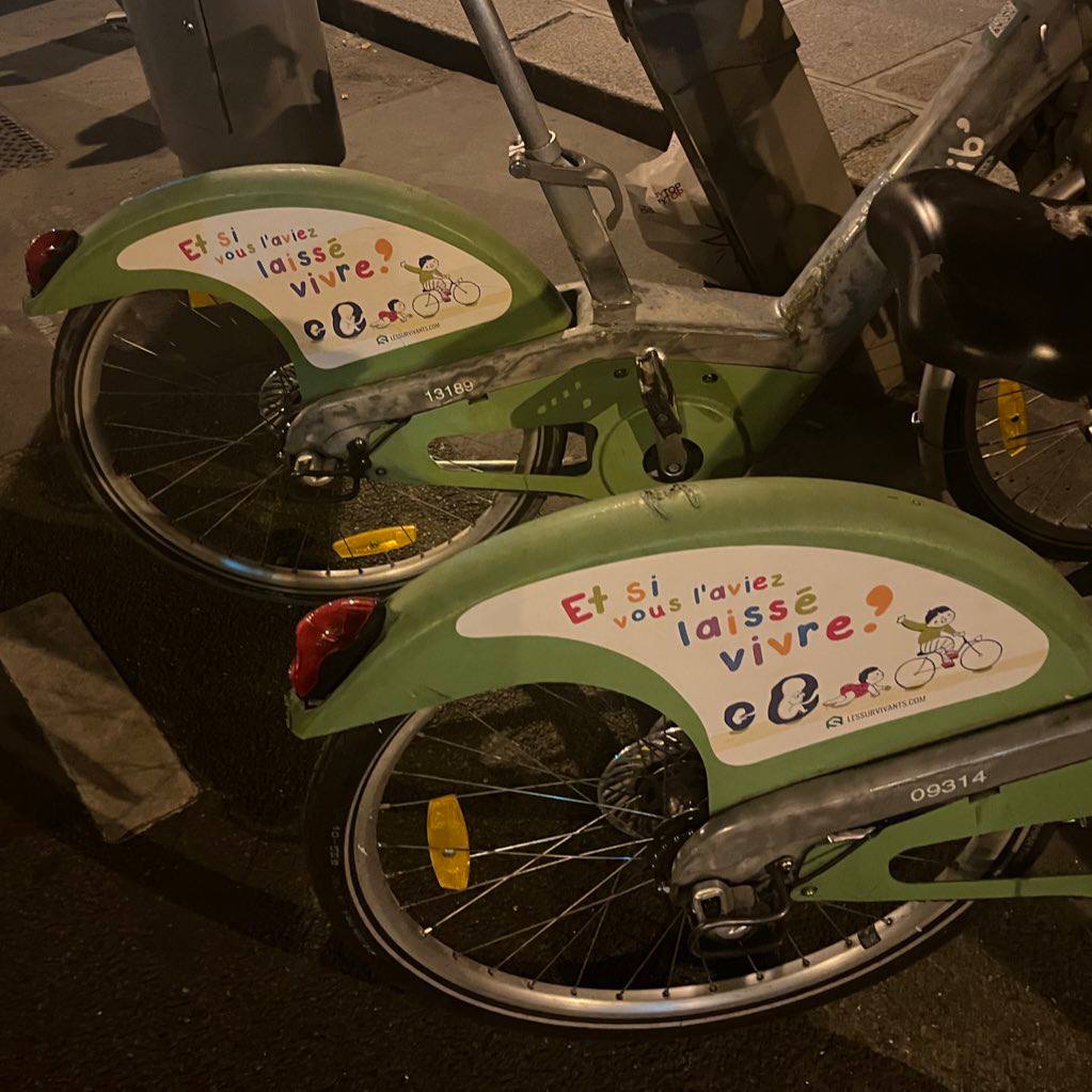 Il aura suffi d’autocollants portant le message « Et si vous l’aviez laissé vivre ? » placés sur les vélos Vélib’ de Paris pour créer un séisme parmi les bobos pro-avortement.
