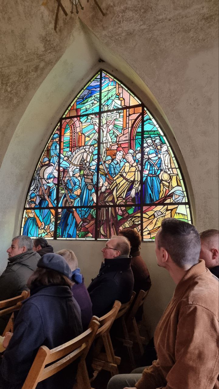 Dans cette chapelle aux magnifiques vitraux, les militants ont écouté attentivement un sermon de circonstance.