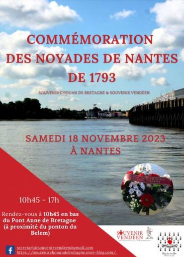 Le samedi 18 novembre, rendez-vous à 10h45 en bas du Pont Anne de Bretagne pour commémorer les noyades de Nantes, odieuses barbaries révolutionnaires qui ont forgé la république française.