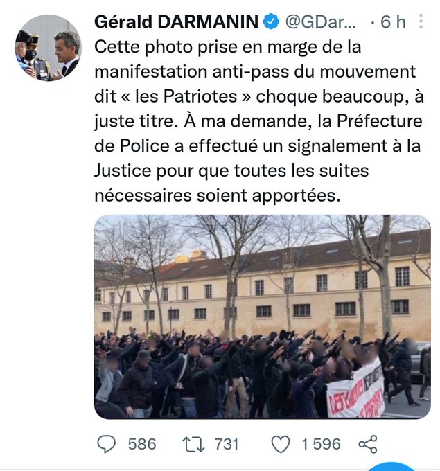 Manif anti pass sanitaire des Patriotes : Voici la vidéo qui montre que la photo dénoncée par Gérald Darmanin ne représente pas des saluts nazis mais un simple « clapping » – Regardez #GéraldDarmanin #nazi #salutnazi #lespatriotes #FlorianPhilippot https://t.co/17Jifms8jJ