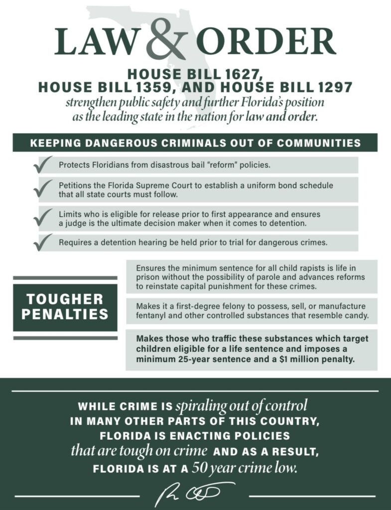 L’une des nouvelles lois, HB 1627, protégera les Floridiens des effets des politiques progressistes de la «réforme de la caution» qui ont contribué à faire grimper les taux de criminalité dans les communautés qui les ont mises en Å“uvre.