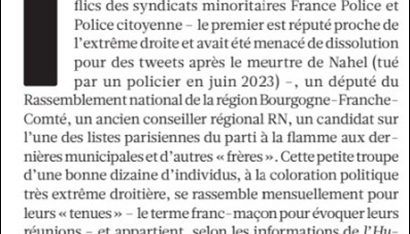 La loge « Abbé Suger » (1) :  des policiers, des syndicalistes et des responsables ou anciens responsables politiques liés au RN.