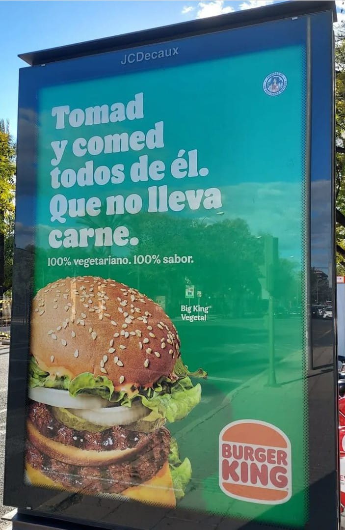 « Prenez et mangez tout ( Tomad y comed todos de él ). C’est sans viande », s’affichait en slogan publicitaire durant la Semaine Sainte pour promouvoir la nouvelle gamme d’options végétariennes de Burger King.