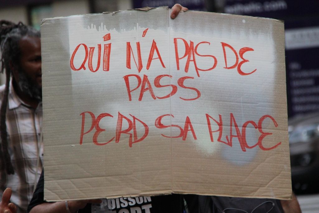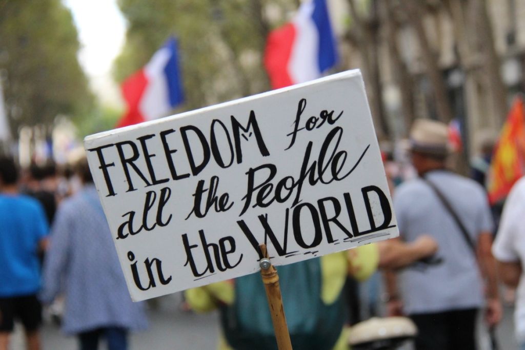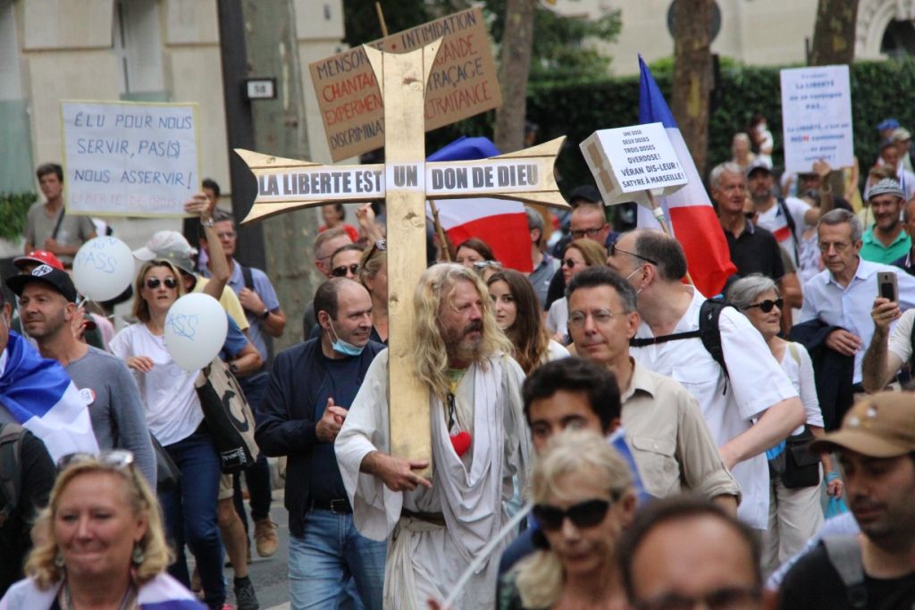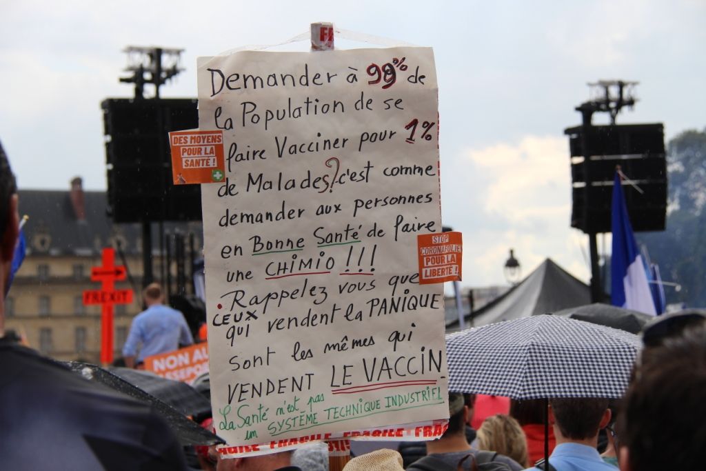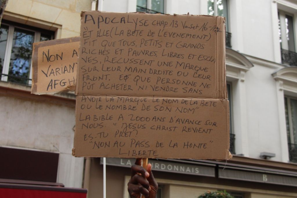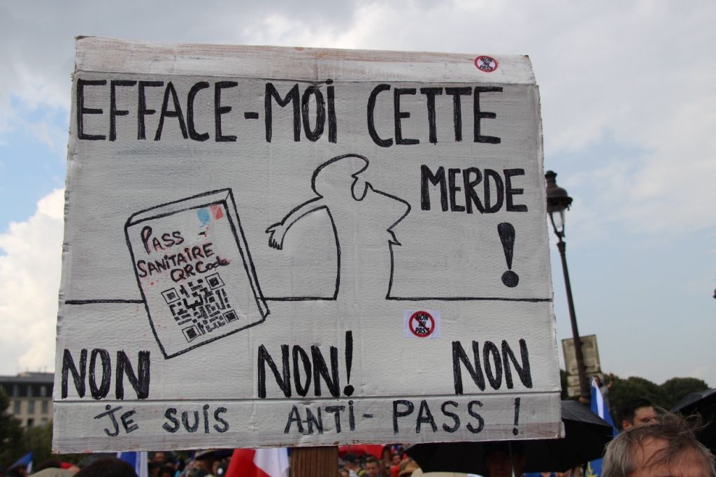 Ceux-ci faisaient écho avec les panneaux exigeant le retour de la liberté et celui du choix ou non de se faire « vacciner ».