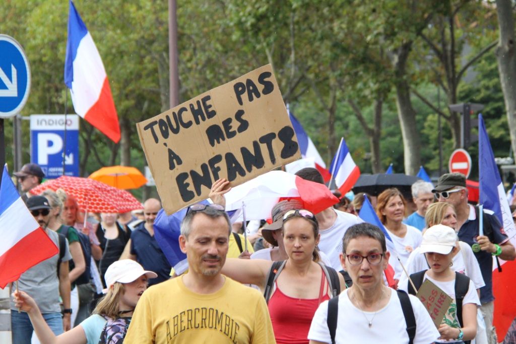 Samedi 4 septembre, la manifestation parisienne contre la vaccination obligatoire et le pass sanitaire s’est attachée à défendre les enfants contre l’offensive gouvernementale cherchant à se servir de l’école comme moyen pour les atteindre.