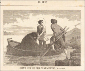 Près du fleuve de Sélé, en Lucanie, l’anniversaire des saints martyrs Guy, Modeste et Crescence. Sous l’empereur Dioclétien, ils furent amenés de Sicile en cet endroit, mis dans une chaudière remplie de plomb bouillant, exposés aux bêtes, trainés sur des claies: surmontant toutes ces tortures par une force divine, ils achevèrent leur glorieux combat.