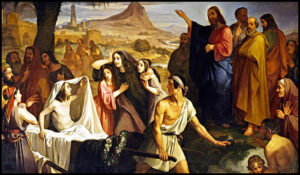 Aujourd’hui et demain encore, la sainte Église ne cesse de nous offrir des types de la résurrection : c’est l’annonce de la Pâque prochaine, et en même temps un encouragement à l’espérance pour tous les morts spirituels qui demandent à revivre. Avant d’entrer dans les deux semaines consacrées aux douleurs du Christ, l’Église rassure ses enfants sur le pardon qui les attend, en leur offrant le spectacle consolant des miséricordes de celui dont le sang est notre réconciliation. Délivrés de toutes nos craintes, nous serons plus à nous-mêmes pour contempler le sacrifice de notre auguste victime, pour compatir à ses douleurs. Ouvrons donc les yeux de l’âme, et considérons la merveille que nous offre notre Évangile. Une mère éplorée conduit le deuil de son fils unique, et sa douleur est inconsolable. Jésus est touché de compassion ; il arrête le convoi ; sa main divine touche le cercueil ; et sa voix rappelle à la vie le jeune homme dont le trépas avait causé tant de larmes. L’écrivain sacré insiste pour nous dire que Jésus le rendit à sa mère. Quelle est cette mère désolée, sinon la sainte Église qui mène le deuil d’un si grand nombre de ses enfants ? Jésus s’apprête à la consoler. Il va bientôt, par le ministère de ses prêtres, étendre la main sur tous ces morts ; il va bientôt prononcer sur eux la parole qui ressuscite ; et l’Église recevra dans ses bras maternels tous ces fils dont elle pleurait la perte, et qui seront pleins de vie et d’allégresse. Considérons le mystère des trois résurrections opérées par le Sauveur : celle de la fille du prince de la synagogue, celle du jeune homme d’aujourd’hui, et celle de Lazare, à laquelle nous assisterons demain. La jeune fille ne fait que d’expirer ; elle n’est pas ensevelie encore : c’est l’image du pécheur qui vient de succomber, mais qui n’a pas contracté encore l’habitude et l’insensibilité du mal. Le jeune homme représente le pécheur qui n’a voulu faire aucun effort pour se relever, et chez lequel la volonté a perdu son énergie : on le conduit au sépulcre ; et, sans la rencontre du Sauveur, il allait être rangé parmi ceux qui sont morts à jamais. Lazare est un symbole plus effrayant encore. Déjà il est en proie à la corruption. Une pierre roulée sur le tombeau condamne le cadavre à une lente et irrémédiable dissolution. Pourra-t-il revivre ? Il revivra si Jésus daigne exercer sur lui son divin pouvoir. Or, en ces jours où nous sommes, l’Église prie, elle jeûne ; nous prions, nous jeûnons avec elle, afin que ces trois sortes de morts entendent la voix du Fils de Dieu, et qu’ils ressuscitent. Le mystère de la Résurrection de Jésus-Christ va produire son merveilleux effet à ces trois degrés. Associons-nous aux desseins de la divine miséricorde ; faisons instance, jour et nuit, auprès du Rédempteur, afin que, dans quelques jours, nous puissions, à la vue de tant de morts rendus à la vie, nous écrier avec les habitants de Naïm : « Un grand Prophète s’est levé « parmi nous, et Dieu a visité son peuple. »