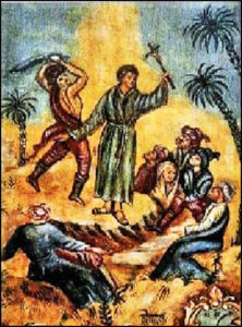 A Mélitène, en Arménie, la passion des saints soldats Eudoxe, Zénon, Macaire, et de quatorze cents de leurs compagnons. Pour avoir quitté le baudrier, ils furent mis à mort pour la foi du Christ durant la persécution de Dioclétien.