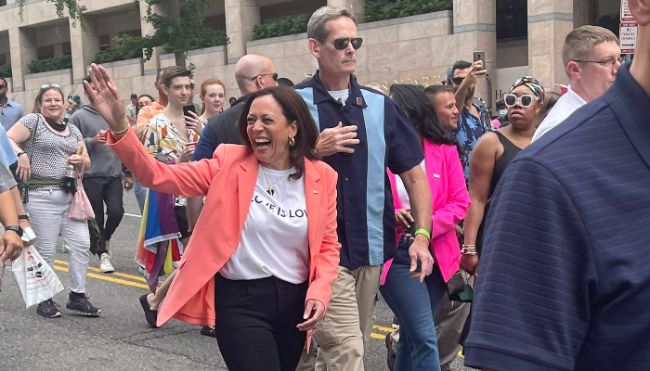 La démocrate Kamala Harris est devenue la première vice-présidente en exercice des États-Unis à assister à un défilé de «fierté» LGBT. Au cours du week-end, elle a tweeté une photo d’elle-même et de son mari Doug Emhoff marchant aux côtés de militants lgbt dans la capitale nationale.