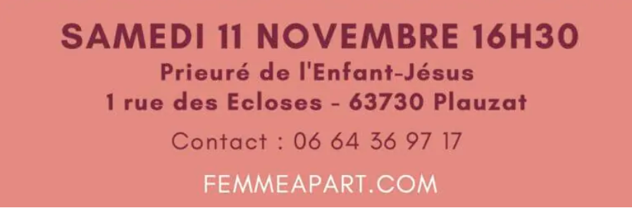 Par Thérèse de « Femme à part », samedi 11 novembre 2023 à 16h30 au Prieuré de Plauzat (63).
