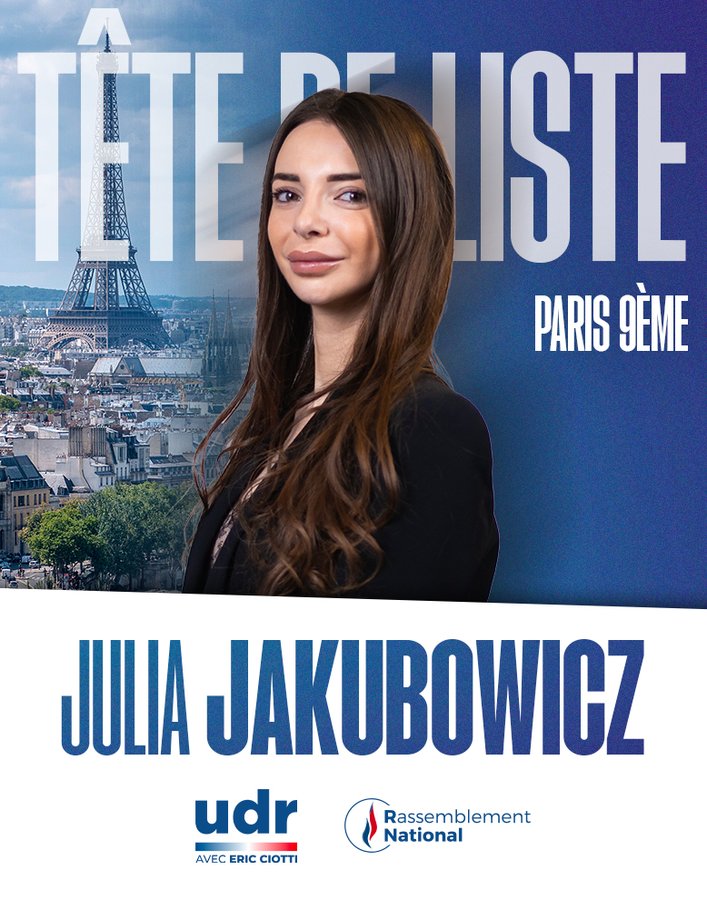 Ce n’est pas une plaisanterie. Julia Jakubowicz, nièce d’Alain Jakubowicz, sera candidate à la mairie du neuvième arrondissement de Paris sous la bannière UDR-RN. avec le soutien d’Eric Ciotti et de Jordan Bardella.