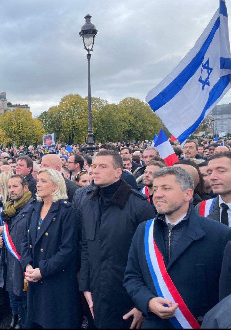 Tous les médias du système ont abondamment diffusé cette image ce dimanche 12 novembre 2023 : Marine Le Pen, Jordan Bardella et de nombreux élus du Rassemblement National venus à la Marche contre l’antisémitisme. Avec un service d’ordre fourni par la Ligue de Défense Juive, tout simplement.