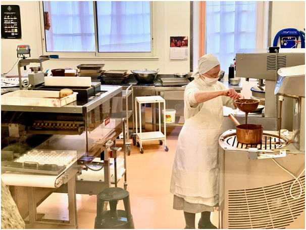 La chocolaterie de l’abbaye, dans laquelle les sœurs confectionnement les gros bouchons d’Igny © Divine Box