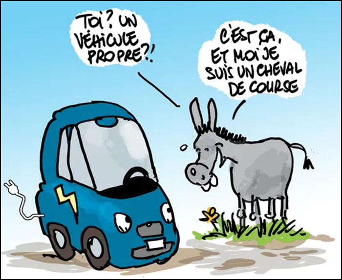 À l’opposé, une voiture électrique a une autonomie imprévisible qui varie selon les saisons, et, contrairement à ce qu’on a bien voulu faire croire, un bilan écologique catastrophique puisque la fabrication des batteries est très « sale ». Bon, vous me direz ce n’est pas grave, puisque ça pollue chez les autres, mais tout de même, il faut se rendre à l’évidence, le bilan n’est pas formidable.