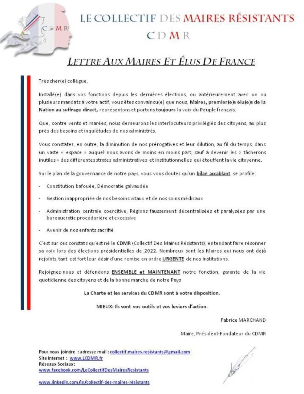 Le Collectif des Maires Résistants diffuse une lettre ouverte aux Maires et élus de France pour dénoncer le bilan accablant de la gouvernance actuelle de la France.
