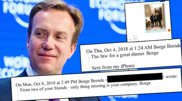 Les trois millions de pages de documents sur l’enquête concernant Jeffrey Epstein, milliardaire pédocriminel lié au Mossad, publiées par le département américain de la Justice, révèlent que l’ancien ministre norvégien des Affaires étrangères, Børge Brende, a eu plusieurs échanges de messages avec Epstein en 2018 et 2019 et que Brende s’est rendu au domicile d’Epstein à New York pour plusieurs dîners, en compagnie notamment de Steve Bannon et Terje Rød-Larsen.