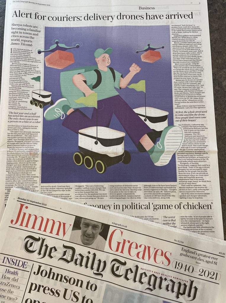 Dans le pas si lointain Royaume-Uni, des centaines de petits robots de livraison montés sur six roues circulent sur le trottoir dans la quasi indifférence générale. Ils sont déjà 200 à parcourir les rues sans le quartier résidentiel de Milton Keynes, à 80 kilomètres au nord de Londres, et dans la cité voisine de Northampton, livrant les courses ou les repas. Ils seront très vite 500, car cinq nouvelles municipalités, notamment dans la région de Cambridge et le nord de l’Angleterre, ont décidé de les adopter.