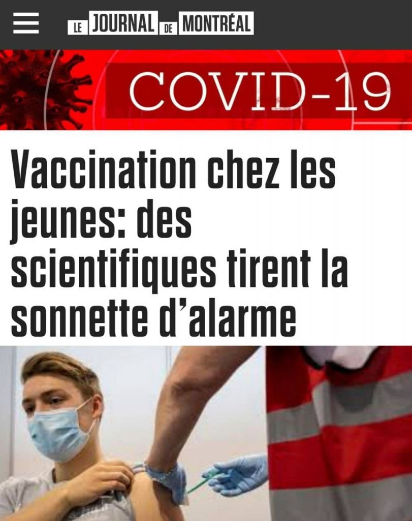 Qu’on ne vienne pas dire que c’est une information complotiste : elle émane du Journal de Montréal qui écrit : « Des scientifiques mettent en garde la population sur les dangers de la vaccination contre la COVID-19 chez les 10-19 ans« .