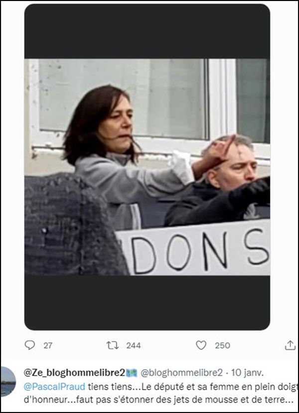 Le député de Saint-Pierre-et-Miquelon, Stéphane Claireaux, aurait été agressé par des anti-vax ! Les manifestants lui aurait jeté des algues. Le pauvre, rendez-vous compte ! Macron et ses amis poussent des cris d’orfraie, la classe politique corrompue s’indigne. Ils oublient tous de préciser que ce dernier a insulté les manifestants – en leur faisant un doigt d’honneur – qui s’en sont ensuite pris à lui.