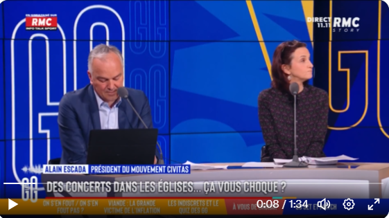 📢 @Alain_Escada, président du mouvement @Civitas_ : « Si une église devenait un lieu de concert, elle serait désaffectée de sa mission de culte ! »#GGRMC pic.twitter.com/ZzseDXm1b3