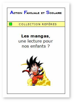 Les mangas, une lecture pour nos enfants ? Action familiale et scolaire, collection Repères, 44 pages, 6€