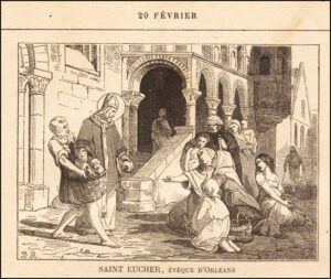 Saint Eucher, illustre par sa famille, et plus encore par ses vertus, naquit près d’Orléans ; sa mère eut, avant sa naissance, révélation de son avenir : un Ange lui prédit qu’il serait évêque d’Orléans. L’étudiant, le moine, l’évêque, sont également admirables en ce personnage prédestiné. A mesure qu’il avançait dans la connaissance de la parole de Dieu, son âme débordait du feu de la charité. La science, loin d’enfler son cœur, n’était pour lui qu’un moyen de s’unir à Dieu davantage et d’avancer de plus en plus dans le chemin de la vertu. Tous ses succès, il les rapportait à la bonté céleste. Jésus-Christ étant la règle de son intelligence et de sa volonté, les efforts de l’ennemi du salut pour perdre cette belle âme par la fausse gloire n’aboutirent qu’à fortifier son espérance en Dieu et à lui faire redoubler d’ardeur pour la prière et la mortification. Il fut reçu à bras ouverts dans le couvent de Jumièges, où il se présenta à l’âge de vingt-sept ans. Dès lors, son ardeur pour la perfection ne connut plus de bornes, et il devint le modèle de ses frères par sa ferveur aux offices divins et par son zèle dans la pratique de tous les devoirs religieux. Rempli de grâces extraordinaires dans la sainte Communion, il aimait à rester au pied du Tabernacle et ne pouvait se résoudre à interrompre ses douces communications avec Jésus-Hostie ; l’obéissance seule pouvait l’éloigner du pied des autels. Sa dévotion spéciale à Marie fut pour lui la source d’une angélique pureté ; il demandait sans cesse à cette Mère céleste de lui conserver cette vertu sublime qui nous rapproche de Dieu. Le mérite d’Eucher ne pouvait demeurer le secret du cloître ; les honneurs vinrent chercher celui qui les avait fuis, et il dut accepter le siège épiscopal d’Orléans. Rarement évêque montra plus de vigueur à combattre le mal et à défendre les droits de Dieu. A Charles Martel, roi de France, qui s’emparait des biens des églises : « Comment, écrivait-il, osez-vous opprimer l’Église, que Dieu vous a chargé de défendre ? Sachez que Jésus-Christ vous demandera compte des maux que vous aurez fait souffrir à Ses membres ; en touchant aux biens des églises, vous vous attaquez à Dieu Lui-même ! » Il mourut le 20 février 738, saint Grégoire III étant pape, Léon III empereur d’Orient et interrègne en France avec Charles Martel, en se recommandant à la très sainte Trinité et en disant : « Seigneur, je remets mon âme entre Vos mains. » Dieu a honoré son tombeau par de nombreux miracles. Parmi d’autres merveilles, on rapporte que des cierges, allumés près de son corps vénéré, brûlèrent longtemps sans se consumer et que l’huile des lampes se multiplia d’une manière évidente et guérit plusieurs malades. Des possédés furent délivrés à son tombeau, des boiteux marchèrent, et des aveugles recouvrèrent l’usage de la vue.