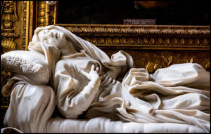 Née en 1474 du patricien romain Stéphane Albertoni et de Lucrèce Tebaldi, Louise resta orpheline de père à l’âge de deux ans à peine et comme la mère se remaria, elle fut élevée par sa grand-mère et ses tantes qui lui donnèrent une formation culturelle et catholique. A vingt ans elle dut se marier, contre son gré, avec le noble du Transtevere Giacomo della Cetera, de caractère rude et instable. Malgré cela, Louise fut une épouse dévouée qui lui donna trois filles. A 32 ans, alors que, Louise est veuve, après avoir gagné un procès pour l’héritage du mari contre le frère de ce dernier, et après le partage des biens entre ses filles, elle donna sa part et elle-même entièrement aux pauvres. Déjà depuis longtemps elle fréquentait l’église voisine de saint François a Ripa, guidée dans son cheminement spirituel par les Frères mineurs qui l’accompagnèrent dans sa décision de se faire Tertiaire franciscaine. Sur les pas du Petit Pauvre d’Assise Louise s’engagea particulièrement pour arracher à la ruer et à l’ignorance les jeunes filles, en les éduquant personnellement et en leur enseignant un métier honnête par lequel assurer sa vie. Morte à l’âge de 60 ans, elle a été enterrée, selon sa volonté, dans la chapelle de Sainte Anne dans l’église de saint François a Ripa au Transtevere; elle fut immédiatement vénérée par les Romains qui connaissaient sa bonté légendaire mais aussi les épisodes d’extase et de lévitation que, dans sa vie, le Seigneur avait voulu lui donner, au point que l’artiste Gian Lorenzo le Bernin dans sa célèbre statue, chef d’œuvre de la sculpture baroque a justement voulu la représenter en mystique. Elle fut béatifiée par Clément X en 1671 et aujourd’hui elle est vénérée comme Co-patronne de Rome.
