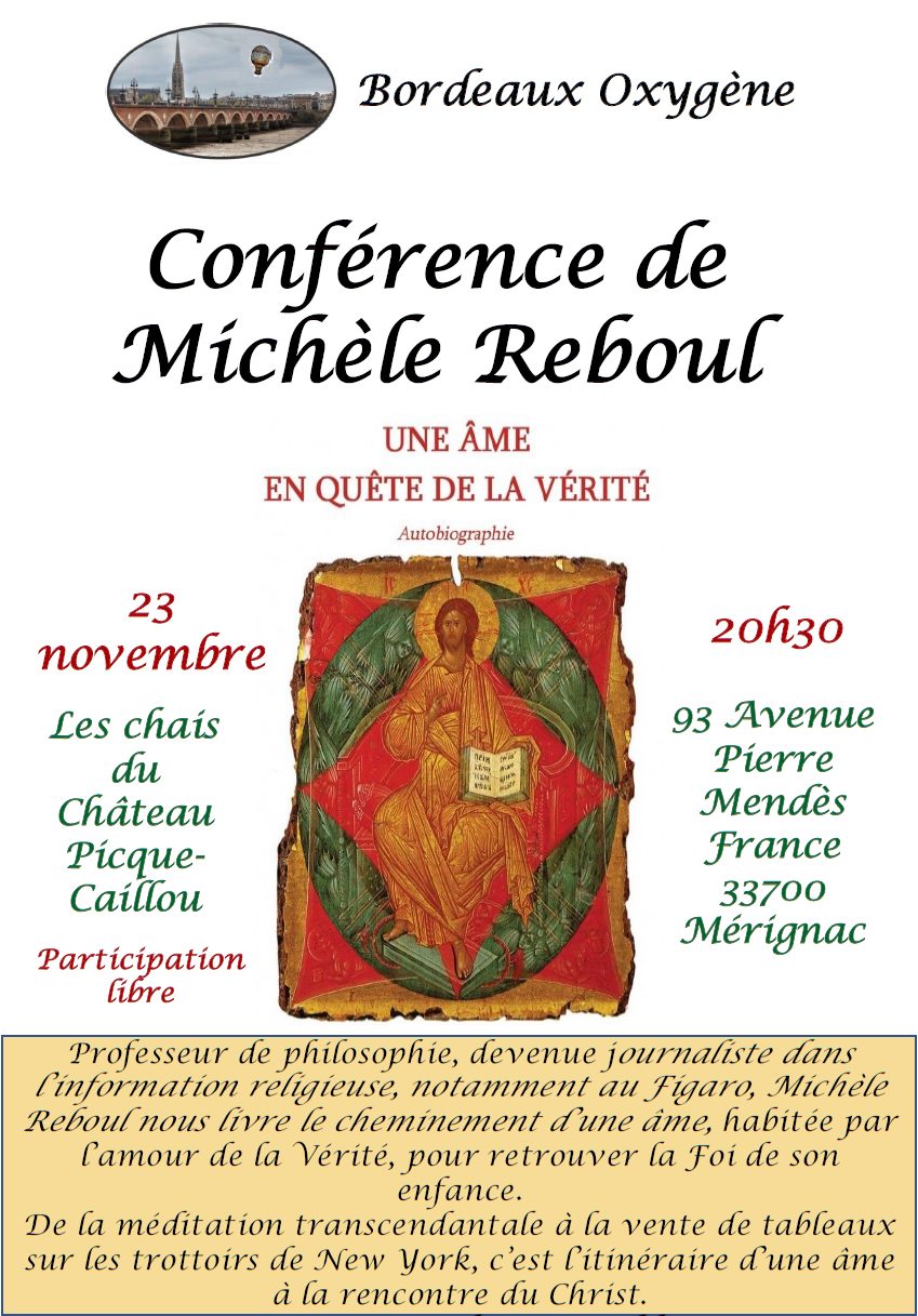 L’Association BORDEAUX OXYGENE vous invite à écouter Michèle Reboul :