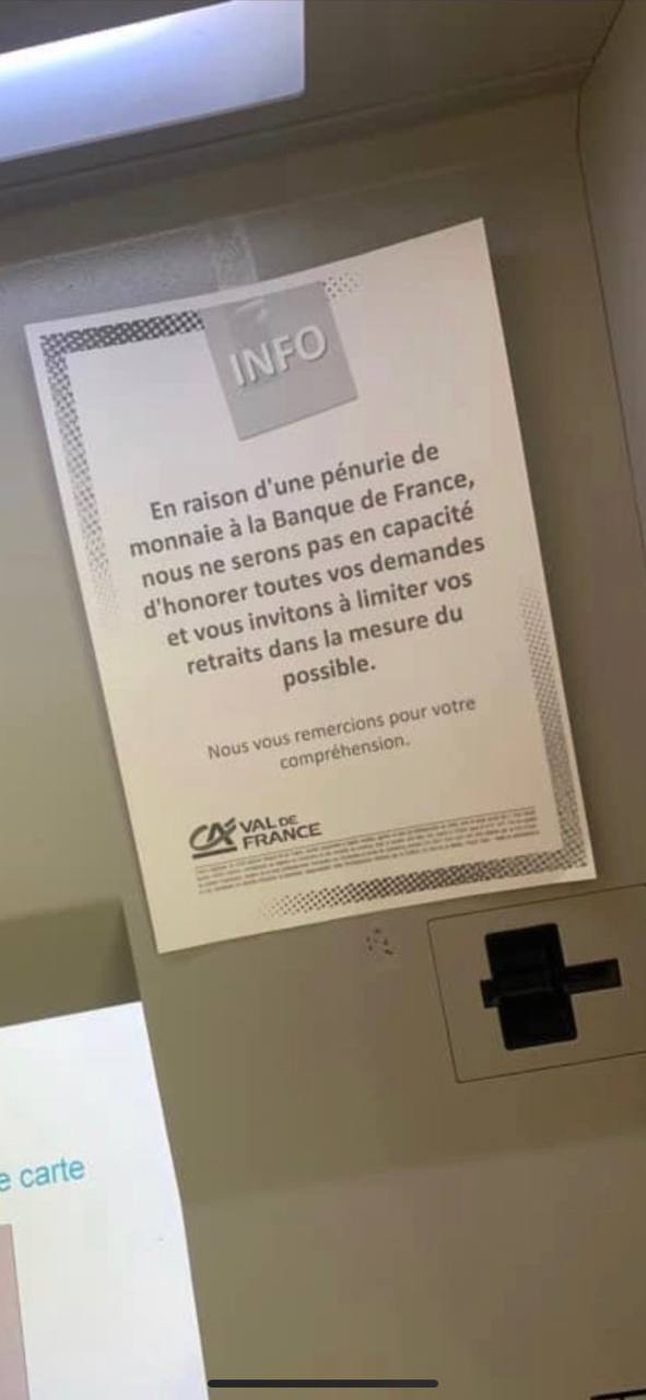 L’imagination malfaisante de l’oligarchie mondialiste est sans limite. Voici la nouvelle étape orchestrée par les adeptes du Forum économique mondial de Davos et appliquée par leurs exécutants en France : la pénurie de monnaie, prétexte supplémentaire pour préparer les esprits aux seules transactions numériques et à la disparition programmée de l’argent liquide.