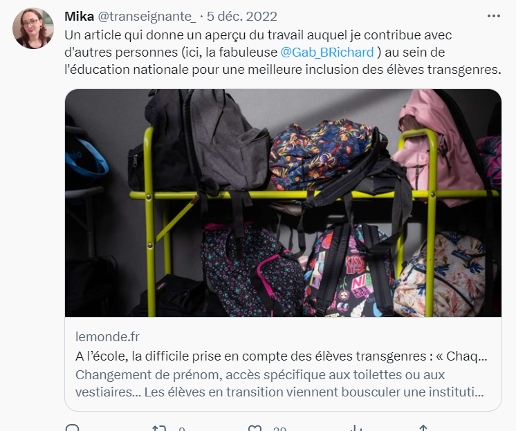 L’un d’eux a même écrit un livre intitulé Vivre sa transidentité à l’école.