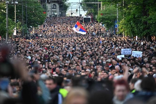 Alors que les manifestants passaient devant les bâtiments gouvernementaux, beaucoup scandaient des slogans dénigrant le président serbe, Aleksandar Vučić, qu’ils accusent d’avoir créé une atmosphère de désespoir et de division dans le pays qui, selon eux, a indirectement conduit aux fusillades de masse.