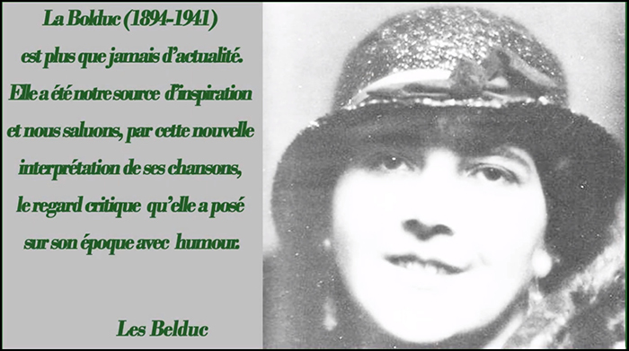 Comme La Bolduc à son époque, c’est notre façon à nous, Les Belduc, de jeter un regard critique sur la société actuelle (2020-…), avec humour et compassion tout à la fois.
