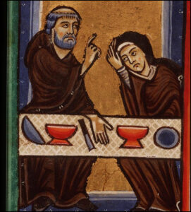 Près du Mont-Cassin, sainte Scholastique vierge, sœur du saint abbé Benoît. Celui-ci vit l’âme de sa sœur sortir de son corps sous la forme d’une colombe et monter au ciel.