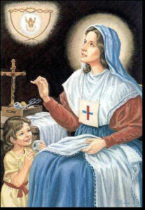 Née à Sienne, Anna-Maria Gianetti suivit son père à Rome où des revers de fortune l’avait contraint d’aller se fixer. La petite passa à peine deux ans à l’école où elle n’apprit qu’à lire. Ses parents faisaient retomber leur amertume sur leur fillette, mais l’angélique pauvrette redoublait de douceur envers eux. Anna-Maria entra très tôt en service afin d’aider ses parents. Elle grandissait, pieuse, travailleuse et coquette, prenant plaisir à se parer. Domenico, qui travaillait au jour le jour au palais Chigi, homme honnête, rude et prompt à la colère, offrit de l’épouser; Anna-Maria accepta sa proposition de mariage. Dans les premiers temps de son ménage, elle conserva ses habitudes mondaines, aimant à fréquenter le théâtre des marionnettes et à porter des colliers de verroterie. Après trois ans de cette vie ainsi partagée entre l’amour de Dieu et l’amour du monde, Anna-Maria se confessa au Père Angelo de l’Ordre des Servites, se convertit totalement et, avec l’assentiment de son mari, elle se fit recevoir dans le Tiers-Ordre des Trinitaires. Domenico ne demandait qu’une chose: que la maison soit bien tenue et paisible! Or, les parents d’Anna-Maria vinrent partager la vie du jeune foyer. Depuis leur arrivée, les scènes de criailleries qu’elle apaise de son mieux se répètent tous les jours, car sa mère acariâtre cherche sans cesse querelle à son gendre qui s’emporte facilement. Atténuant les heurts le mieux possible, elle s’empresse auprès de son époux trop vif qui jette le dîner par terre avec la table quand un plat lui déplaît. Après la mort de sa mère, son père vit aux dépens de sa fille et multiplie disputes sur disputes. Lorsque la lèpre l’atteint, la bienheureuse Anna-Maria le soigne tendrement et l’aide à mourir chrétiennement. Pour leurs sept enfants, la maison risquait de devenir un enfer, mais la bienheureuse demeurait si surnaturellement douce, que Domenico affirmera que c’était un vrai paradis chez lui, et que l’ordre et la propreté régnaient partout dans son pauvre gîte. Anna-Maria se levait de grand matin pour se rendre à l’église, et communiait tous les jours. Lorsqu’un membre de la famille était malade, pour ne donner à personne l’occasion de se plaindre et de murmurer, elle se privait de la messe et de la communion. Pour suppléer à cette privation involontaire, elle se recueillait pendant les moments libres de la journée. La bienheureuse Anna-Maria Taïgi tenait ses enfants toujours occupés. Après le souper, la famille récitait le rosaire et lisait une courte vie du Saint du jour, puis les enfants se mettaient au lit après avoir reçu la bénédiction. Le dimanche, ils visitaient les malades à l’hôpital. Sa tendresse maternelle ne l’empêchait pas d’appliquer fermement les sanctions méritées, telles la verge ou le jeûne. Ses enfants profitèrent avantageusement de cette éducation si équilibrée et devinrent vite l’honneur de leur vertueuse mère et le modèle de leurs camarades. Sa délicatesse envers les humbles était exquise. Elle nourrissait sa servante mieux qu’elle-même; à une qui cassait la vaisselle par maladresse, elle disait gentiment: «Il faut bien faire gagner la vie aux fabricants de faïence.» Lors de sa réception comme membre du Tiers-Ordre de la Sainte Trinité, la bienheureuse s’était offerte comme victime expiatrice pour les péchés du monde. En retour de cette généreuse offrande, Dieu lui accorda la vision permanente d’un globe ou soleil lumineux dans lequel elle lisait les besoins des âmes, l’état des pécheurs et les périls de l’Église. Ce phénomène extraordinaire dura quarante-sept-ans. Surprise au milieu de ses occupations domestiques par les ravissements et les extases, Anna-Maria s’efforçait vainement de s’y soustraire. Grâce à elle, les malades avertis de leur fin prochaine mouraient saintement. Comme le sort des défunts lui était révélé, sa compassion pour eux lui inspirait de multiplier ses pénitences afin de libérer au plus tôt ces pauvres âmes qui venaient la remercier de leur délivrance. Bien que la bienheureuse Anna-Maria Taïgi souhaitait ardemment rester ignorée de tous, une foule de visiteurs composée de pauvres, de princes, de prêtres, d’évêques, du pape même, accourait pour demander conseil à sa sagesse inspirée. Simple et humble, elle répondait tout bonnement en se dérobant aux louanges, refusant toujours le plus petit cadeau. Or, celle qui répandait ainsi la sérénité et la lumière autour d’elle, fut privée de consolation spirituelle pendant vingt ans, et éprouvait le sentiment très net d’être reléguée en enfer. Pendant sept mois, les angoisses et les ténèbres de son âme s’étant accrues, Anna-Maria Taïgi expérimenta une véritable agonie, n’en continuant pas moins à diriger sa maison comme si de rien n’était. Malgré ses doigts devenus si douloureux, elle cousait beaucoup afin d’assurer le pain quotidien de la maisonnée. La femme du gouverneur de Savoie qui avait obtenu tant de grâces par les prières de la servante de Dieu, voulut lui donner une forte somme d’argent, mais la bienheureuse la refusa catégoriquement. Le Lundi-Saint, dans une extase, Anna-Maria apprit qu’elle mourrait le Vendredi-Saint. Après avoir béni tous les siens, et les avoir remercié, elle rendit l’âme dans un cri de bonheur et de délivrance. Il semble que Dieu ait voulu montrer dans la personne de cette admirable bienheureuse, la possibilité d’allier des vertus éminentes et des dons surnaturels exceptionnels à la fidélité aux devoirs les plus humbles et les plus matériels de la vie commune. Le pape Benoît XV béatifia Anna-Maria Taïgi, le 30 mai 1920.