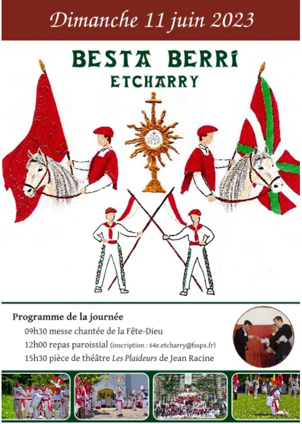 09h30 messe solennelle célébrée par Monsieur l’abbé Loïc Duverger suivie de la traditionnelle procession au Très Saint Sacrement