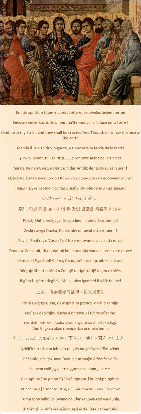 Nous donc, appelés à recevoir sous peu d’heures l’effusion de cet Esprit d’amour qui vient « renouveler la face de la terre », soyons attentifs comme nous le fûmes à Bethléhem, dans les moments qui précédèrent la naissance de notre Emmanuel. Le Verbe et l’Esprit-Saint sont égaux en gloire et en puissance, et leur venue sur la terre procède du même décret éternel et pacifique de la glorieuse Trinité, qui a résolu, par cette double visite, de nous « rendre participants de la nature divine ». Nous les fils du néant, nous sommes appelés à devenir, par l’opération du Verbe et de l’Esprit, les fils du Père céleste.